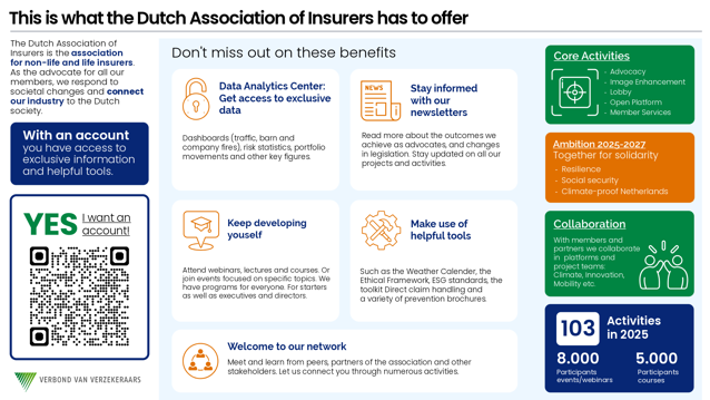 Employees of insurers who are members of the Association can make use of various services. Download this infographic to share with your colleagues via, for example, the intranet or the bulletin board: